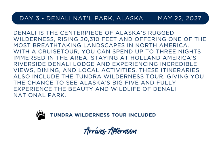 From Denali National Park to Alaska’s stunning coastal landscapes, this journey combines unforgettable scenery, wildlife, and iconic destinations into one incredible experience.